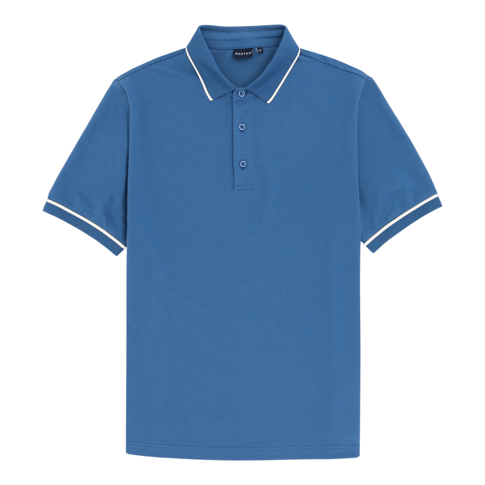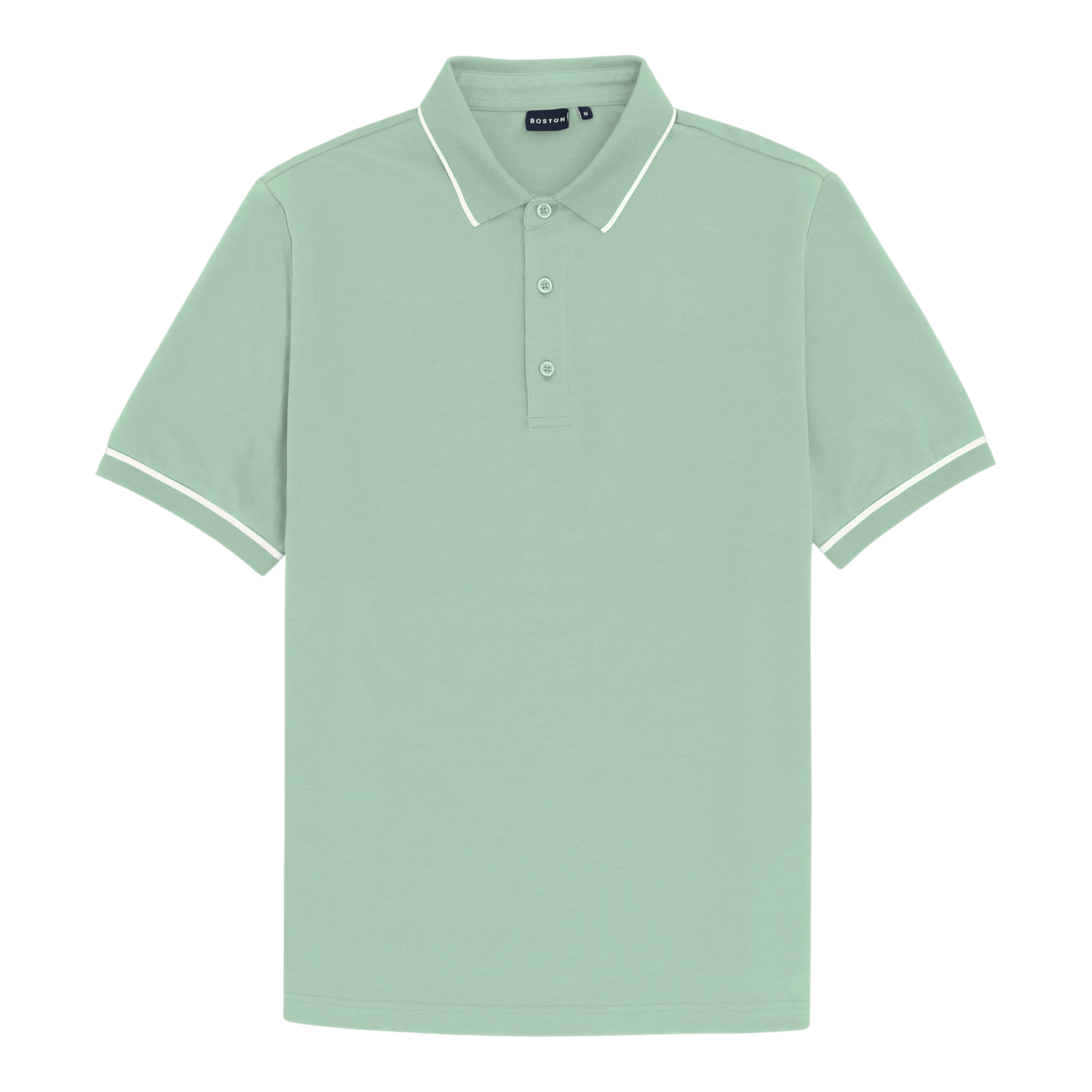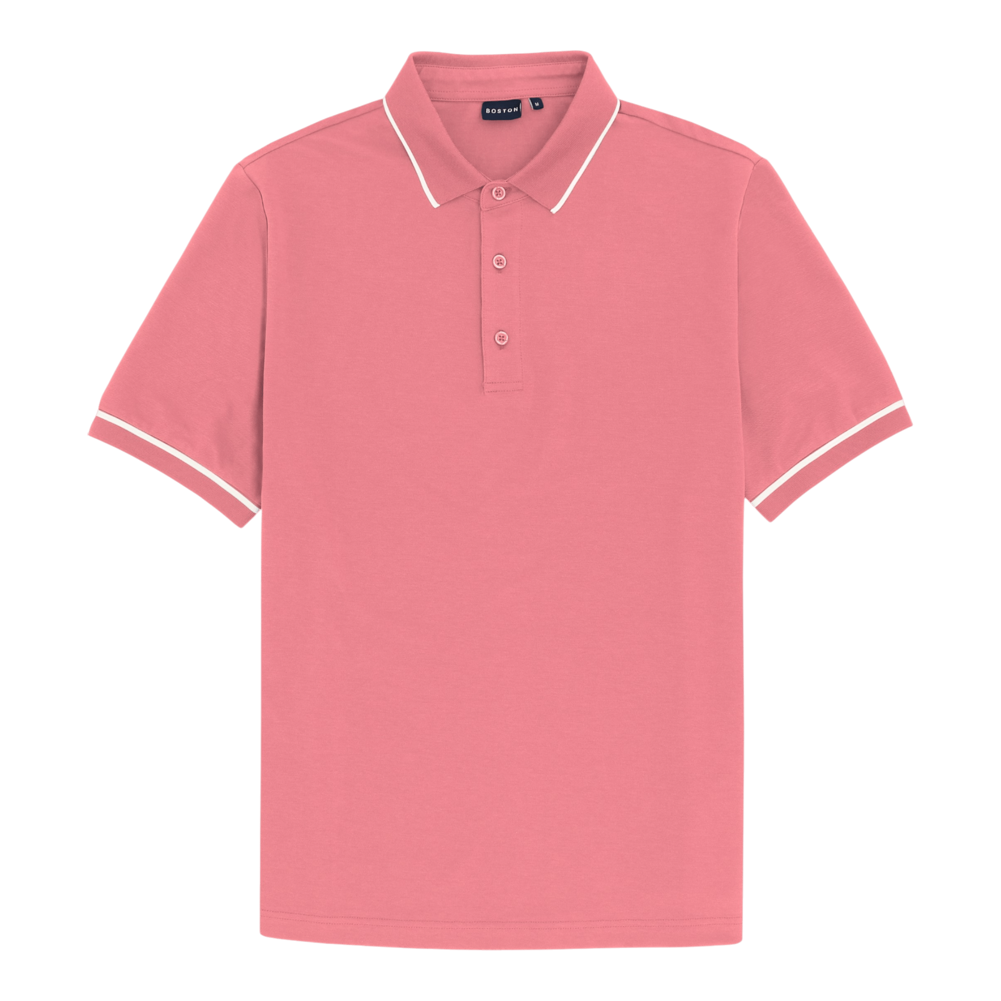 Light weight stretch polo with contrast rim on knit collar and cuffs.Cotton/Polyester/elastane