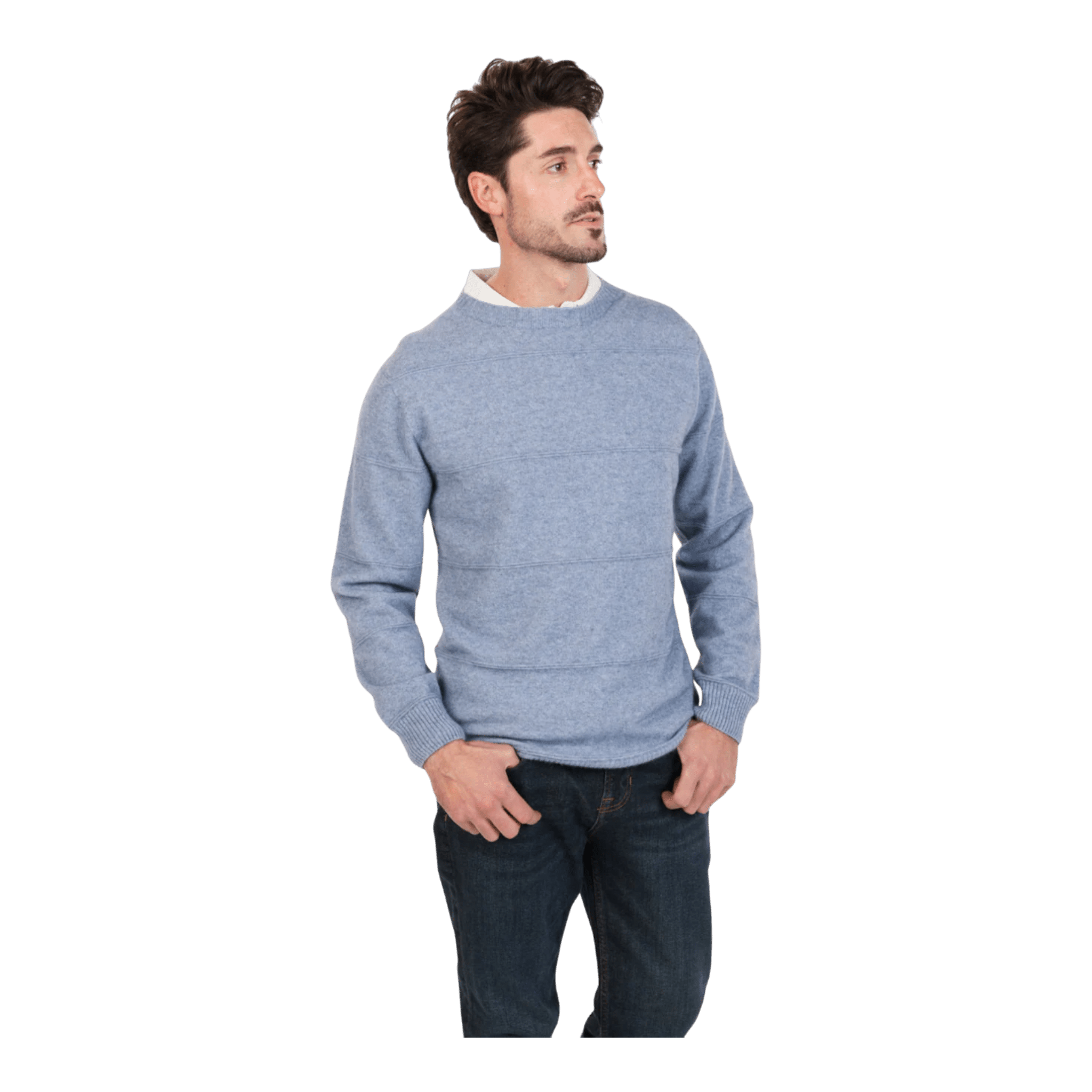 A classic fit crew, with a unique layered ripple stitch design