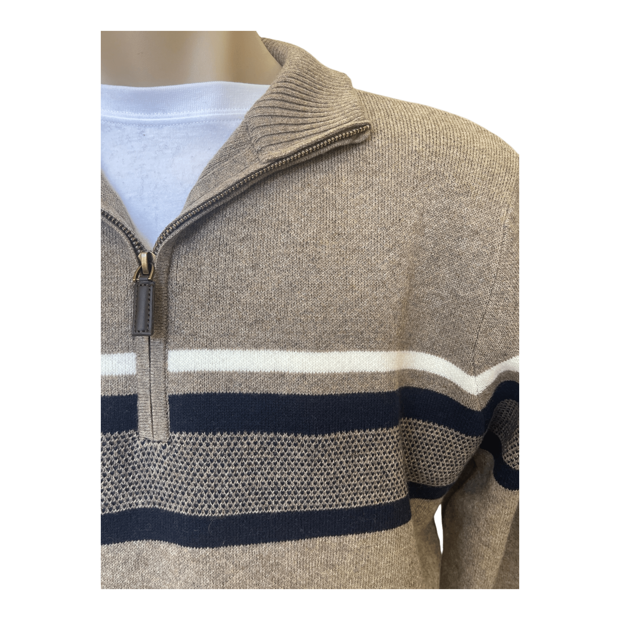 Wool/cotton blend pullover with a zip collar and contrast pattern